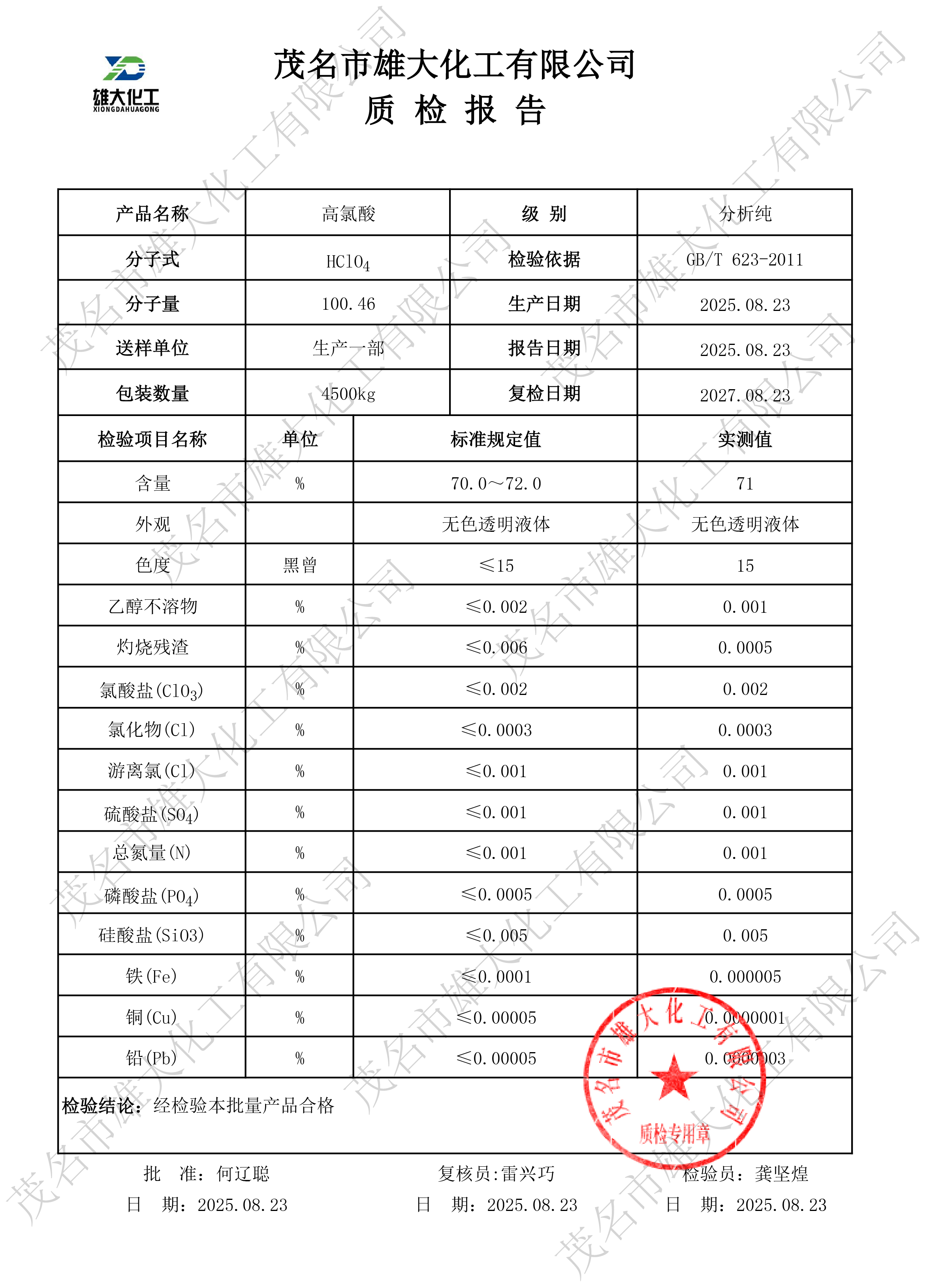 我们是一家专注于高氯酸,高氯酸锂,高氯酸镁的生产厂家,凭借优异的品质和稳定的生产和供应能力,致力于为全球客户提供高品质、高纯度的化学产品,广泛应用于生物制药、高效实验室、半导体和人造金刚石,符合国际质量标准,满足高端应用需求,为客户提供高性能的解决方案。